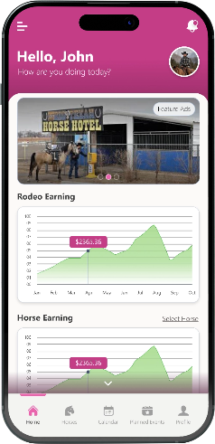 Build and manage profiles for yourself and your horse(s) to get a personalized experience and dedicated features like finding equine services providers while on the road, 24/7 support, tracking earning, expenses, different arenas, and more.